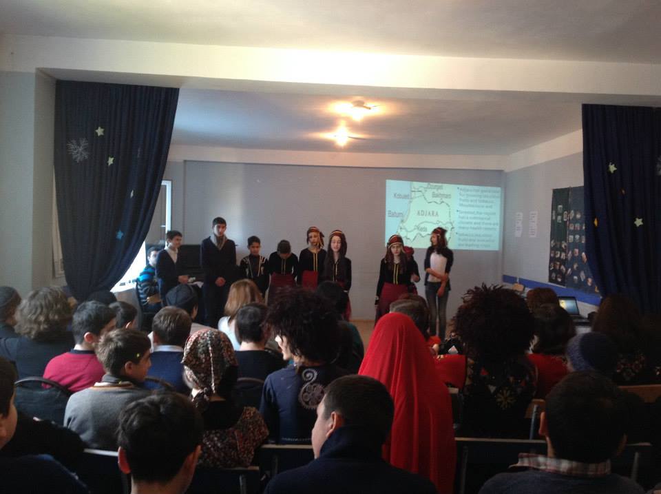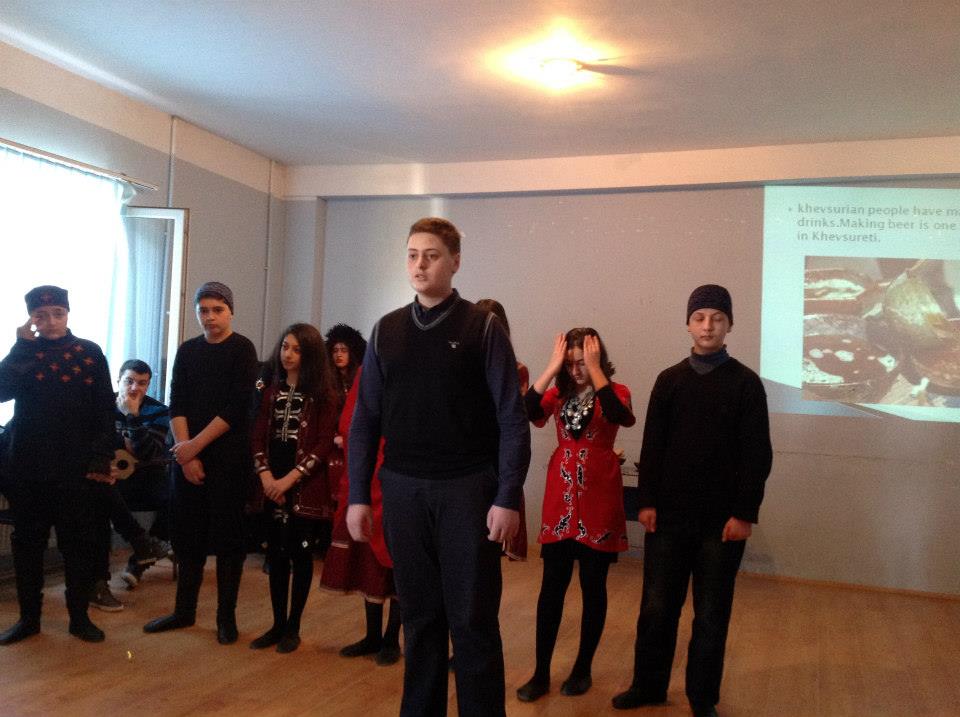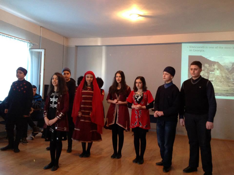 VIII კლასელთა გაკვეთილი-პრეზენტაცია მიზნად ისახავდა საქართველოს კუთხეთა ტრადიციების, წეს-ჩვეულებებისა და ღირსშესანიშნაობების უცხოელი სტუმრებისათვის გაცნობას .